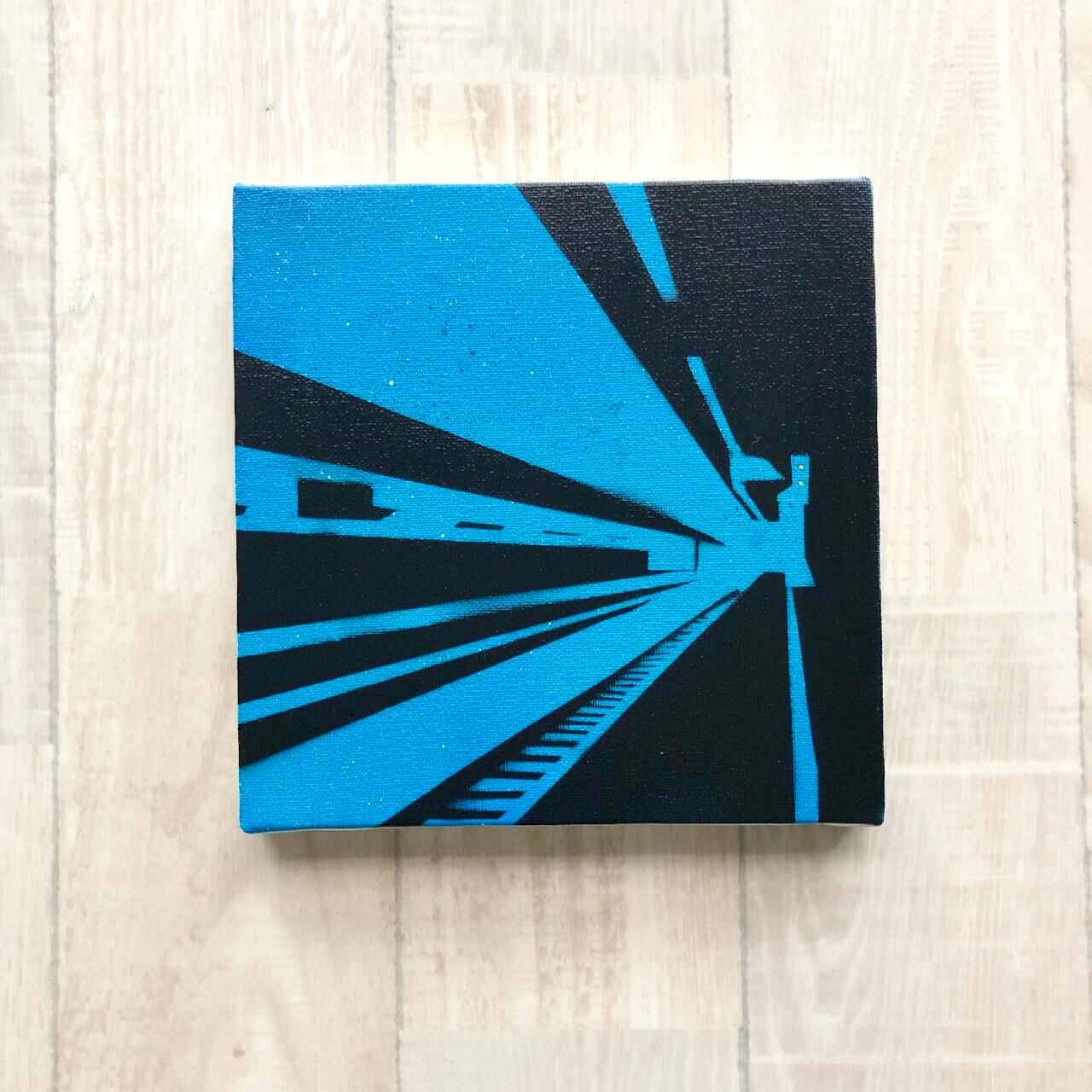 「星空のプラットホーム」 可愛らしい真四角キャンバス お部屋と生活を彩るインテリアパネル風景画