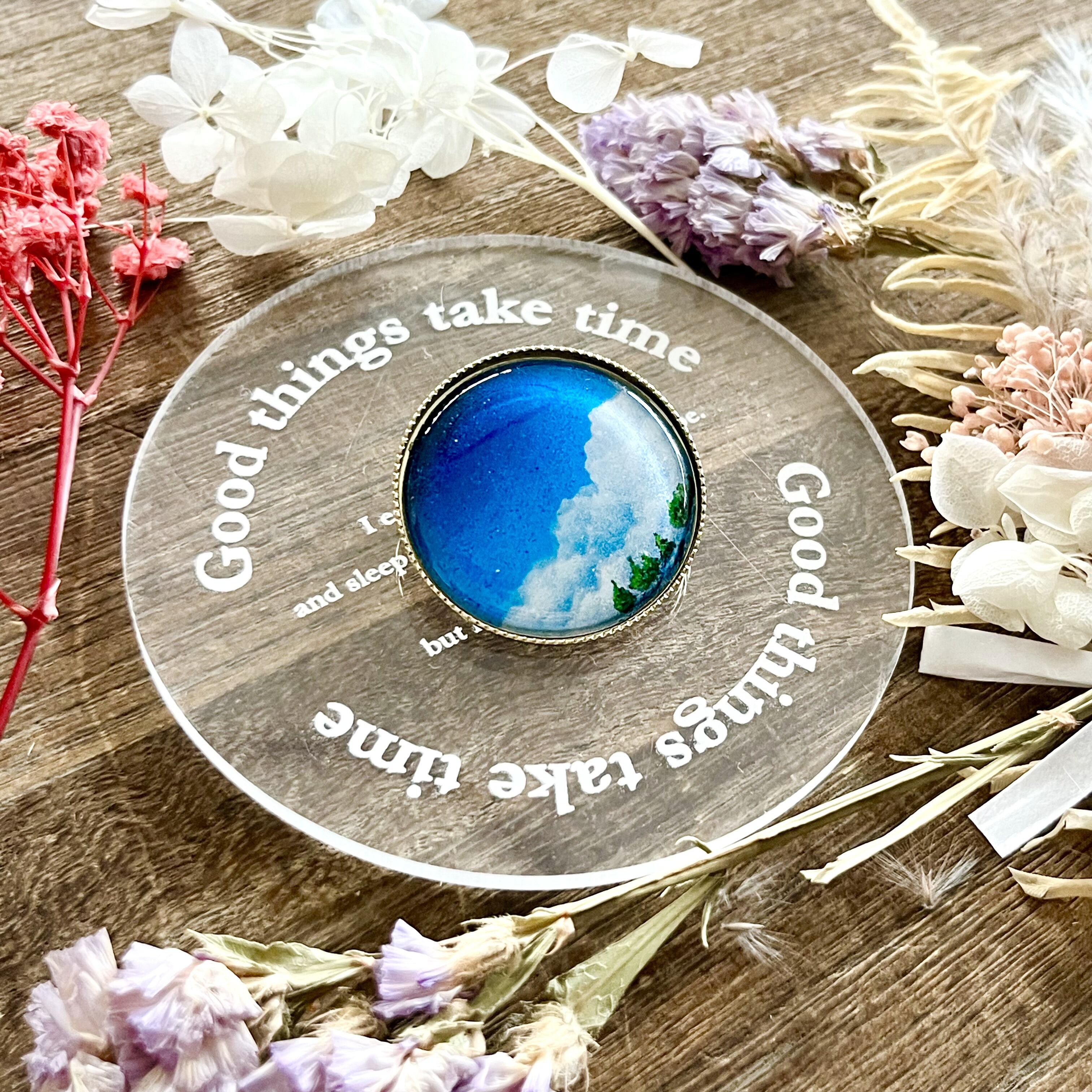 お出かけがちょっと楽しくなる、日常でカジュアルに使える風景画のブローチです。