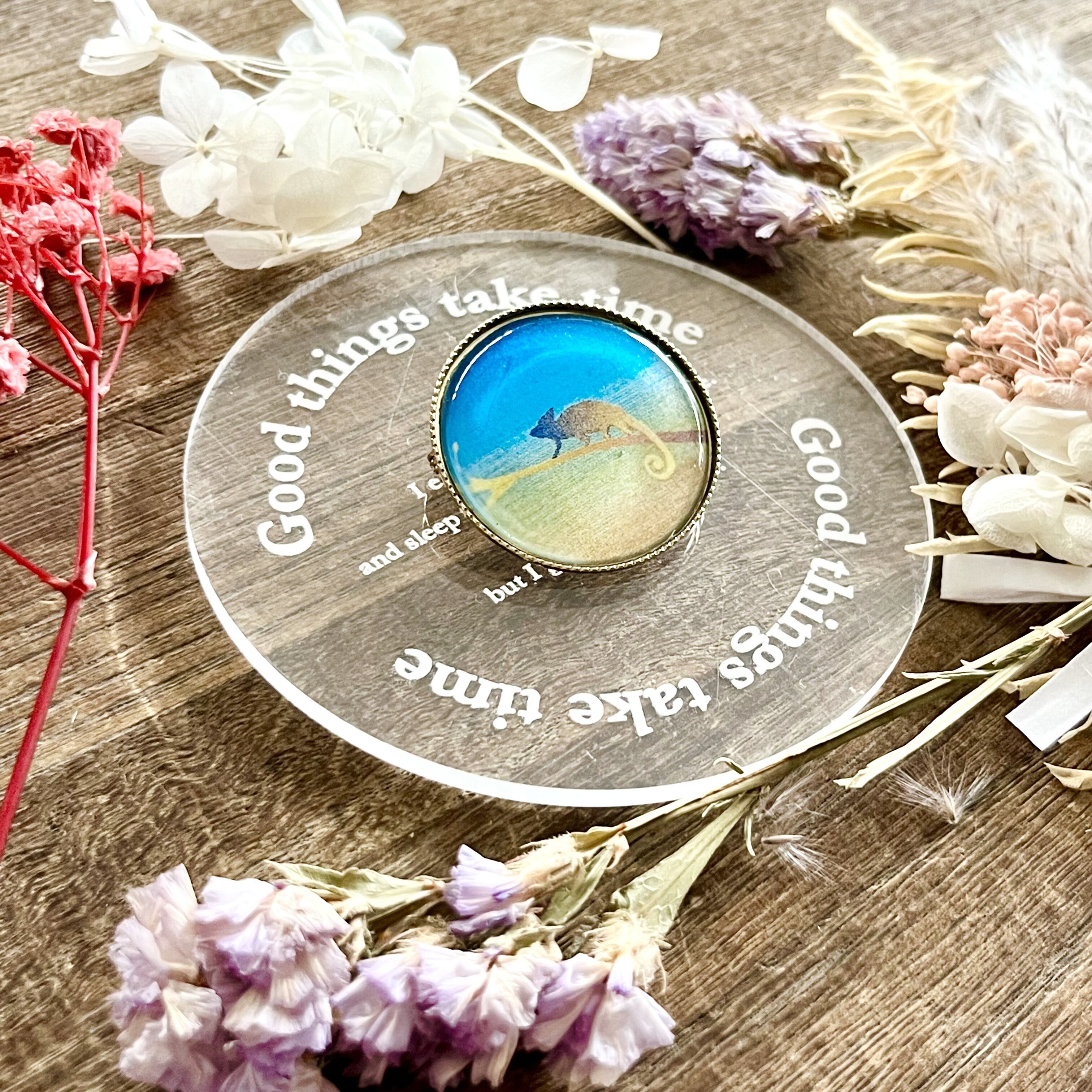 お出かけがちょっと楽しくなる、日常でカジュアルに使える風景画のブローチです。